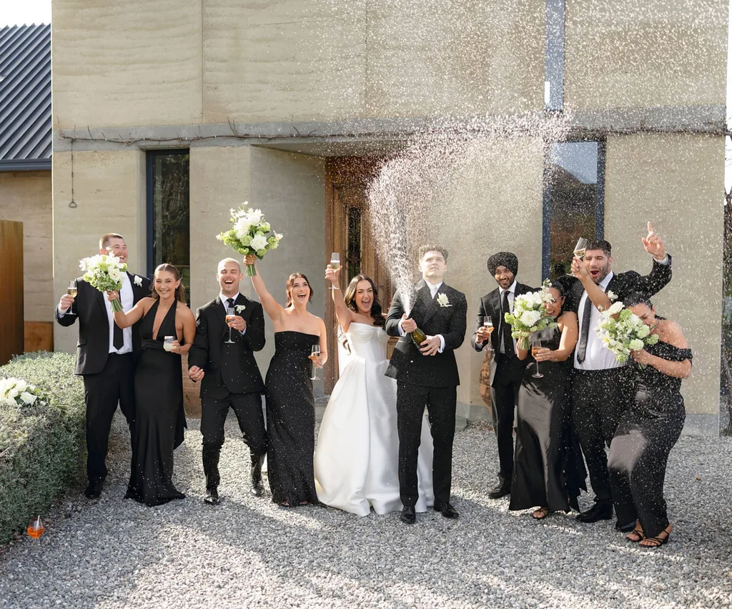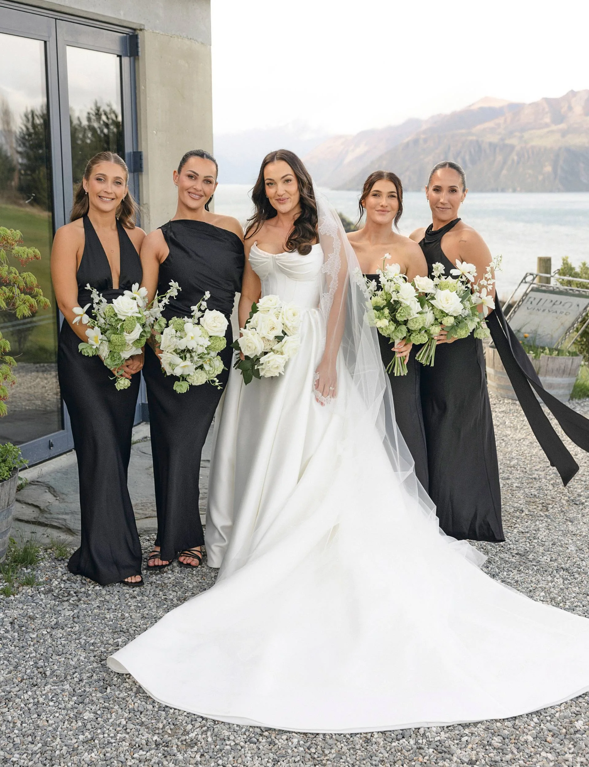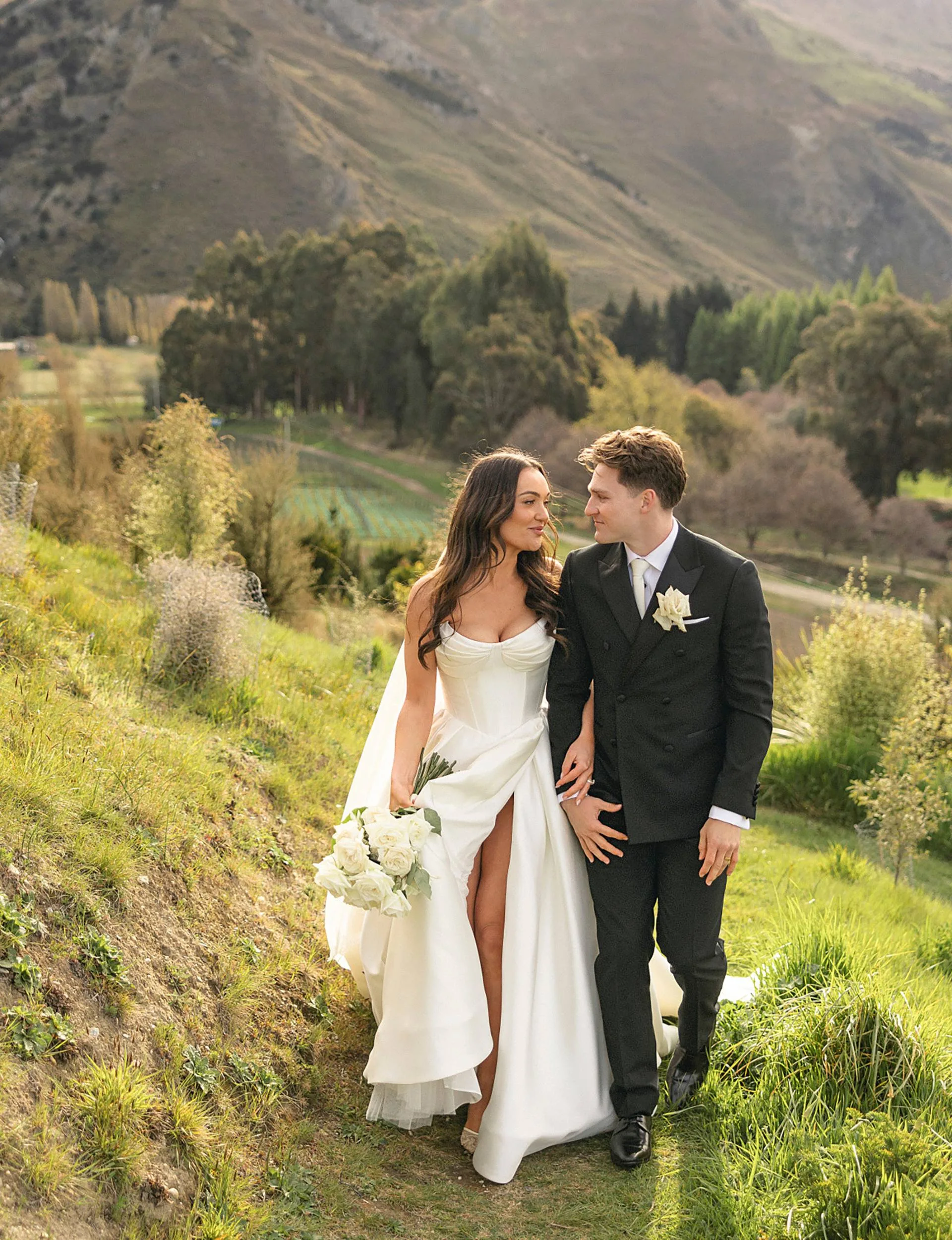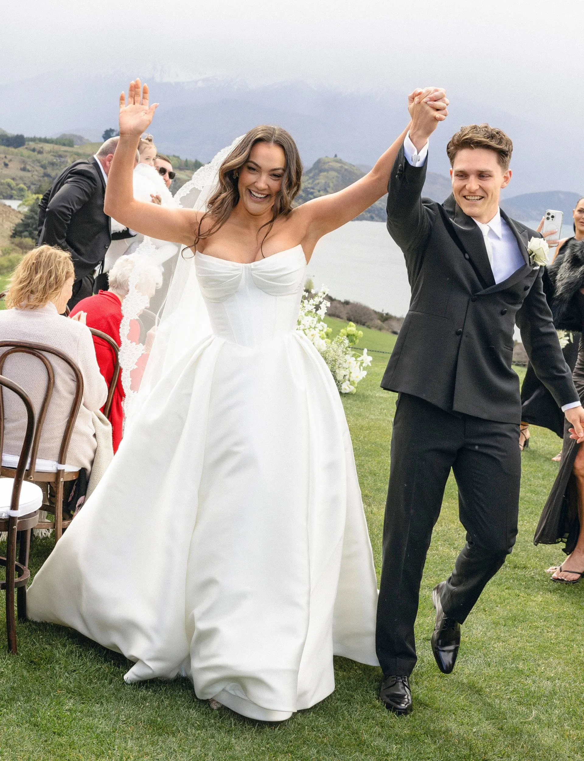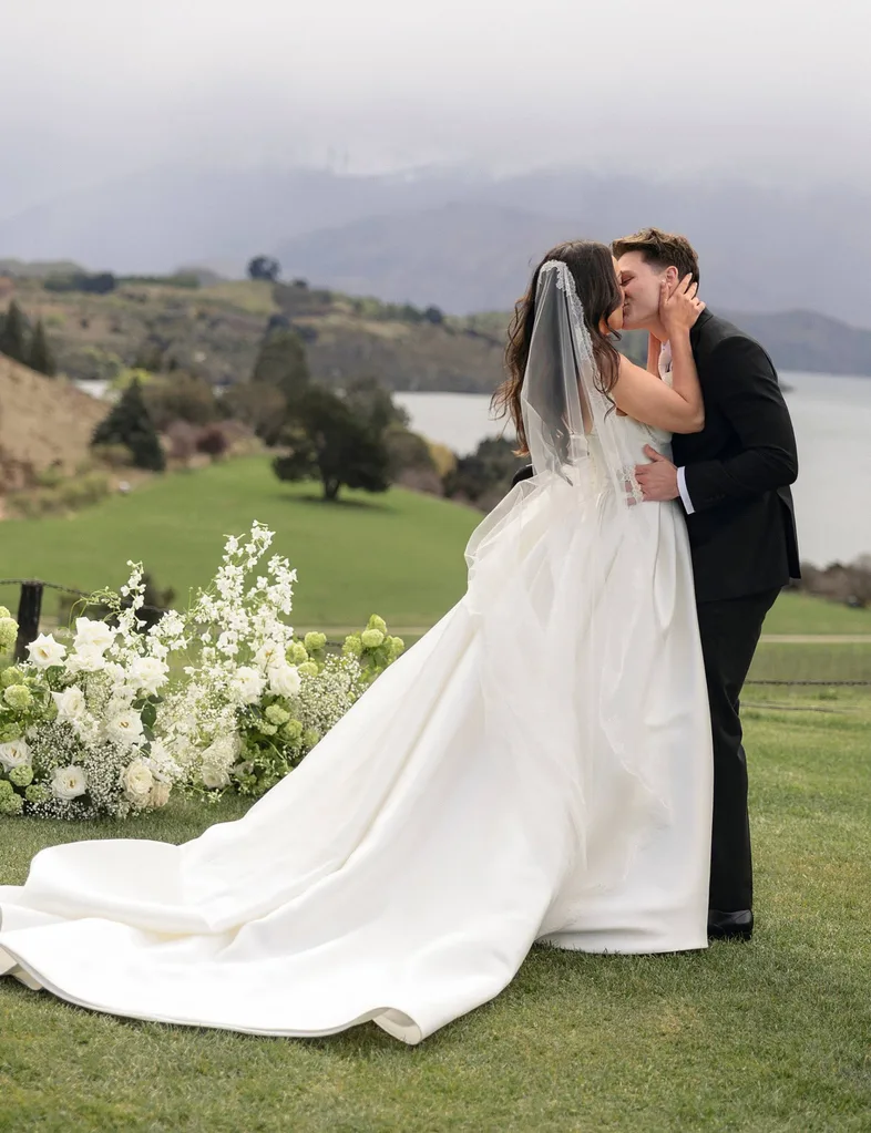 Luckily, the weather cleared enough for the couple to have their dream outdoor ceremony at high-end Rippon Hall. Guests soaked up breathtaking views across vineyards to Lake Wānaka and the Southern Alps as Luke and Brodie said “I do.”