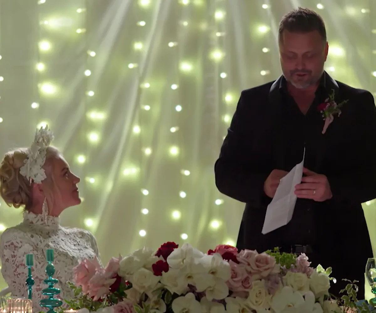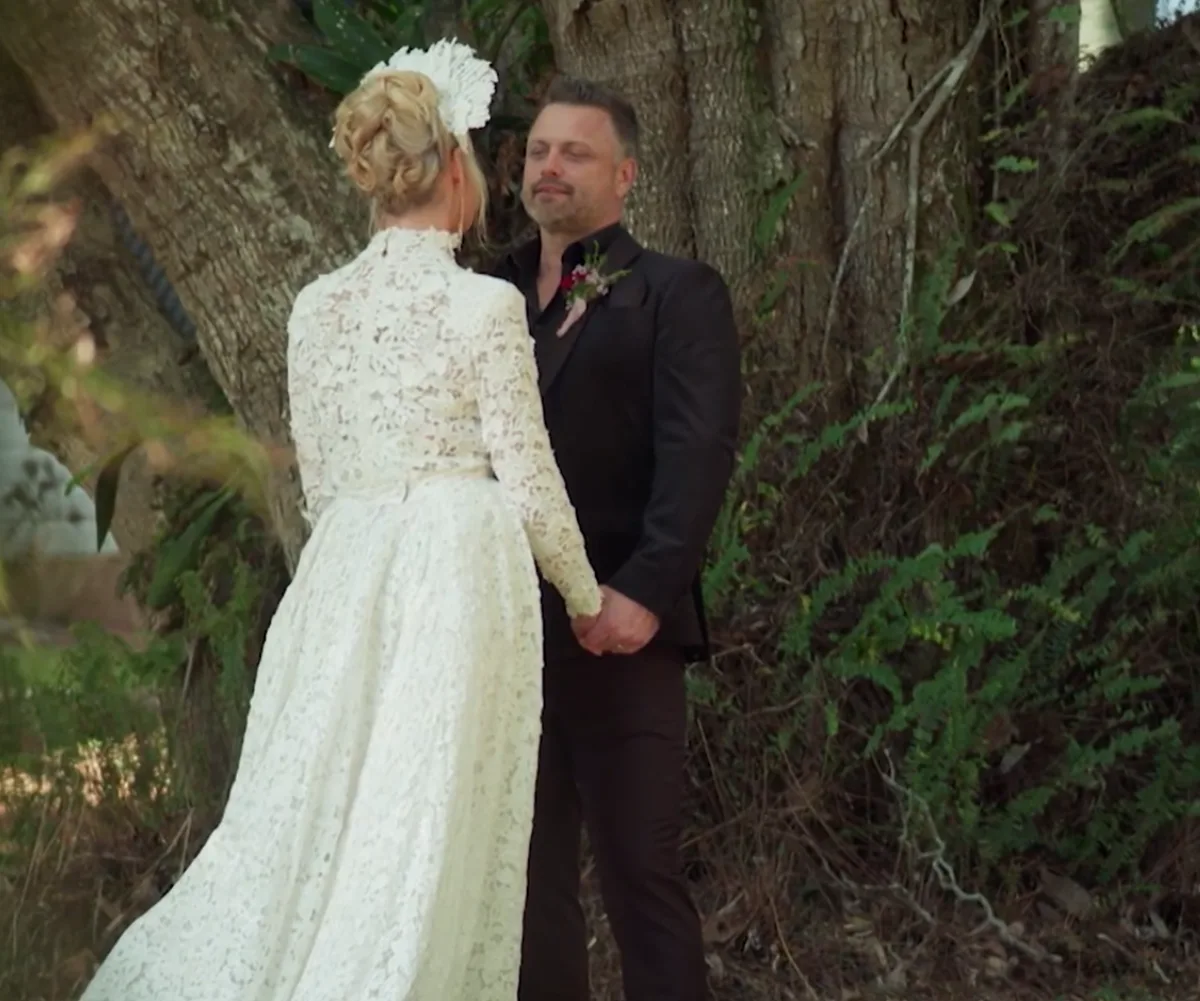 The wedding ceremony was off to a rocky start, at least for Timothy who quickly discovered her “spiritual energy” when Lucinda invited a guest to “bless” the relationship.