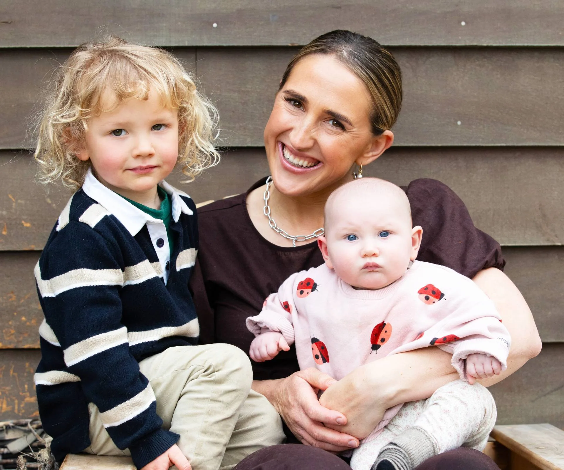 With her six-month-old daughter Frankie perched on her hip and three-year-old Charlie tugging at her leg for a snack, PJ says life as a mum of two is everything she imagined – exhausting, intense, hilarious and fulfilling.