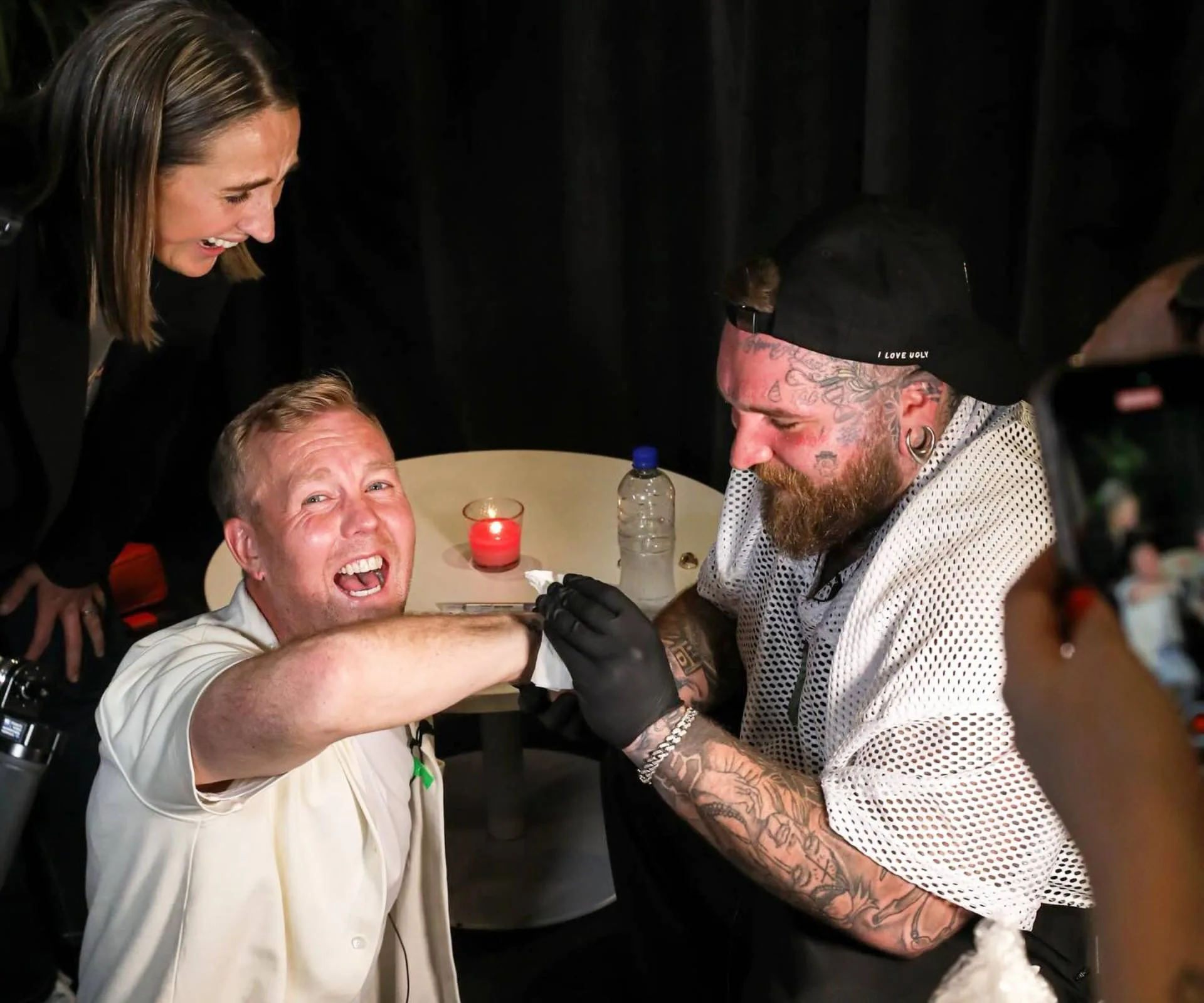 Now reunited, the duo is full of energy and ideas for what’s ahead. With his big birthday looming, Matty’s even put together a “things to do before 40” list, with the first item already ticked off – getting a tattoo from Lose Control singer Teddy Swims, who inked a little bear on Matty’s arm ahead of his sold-out Auckland show.