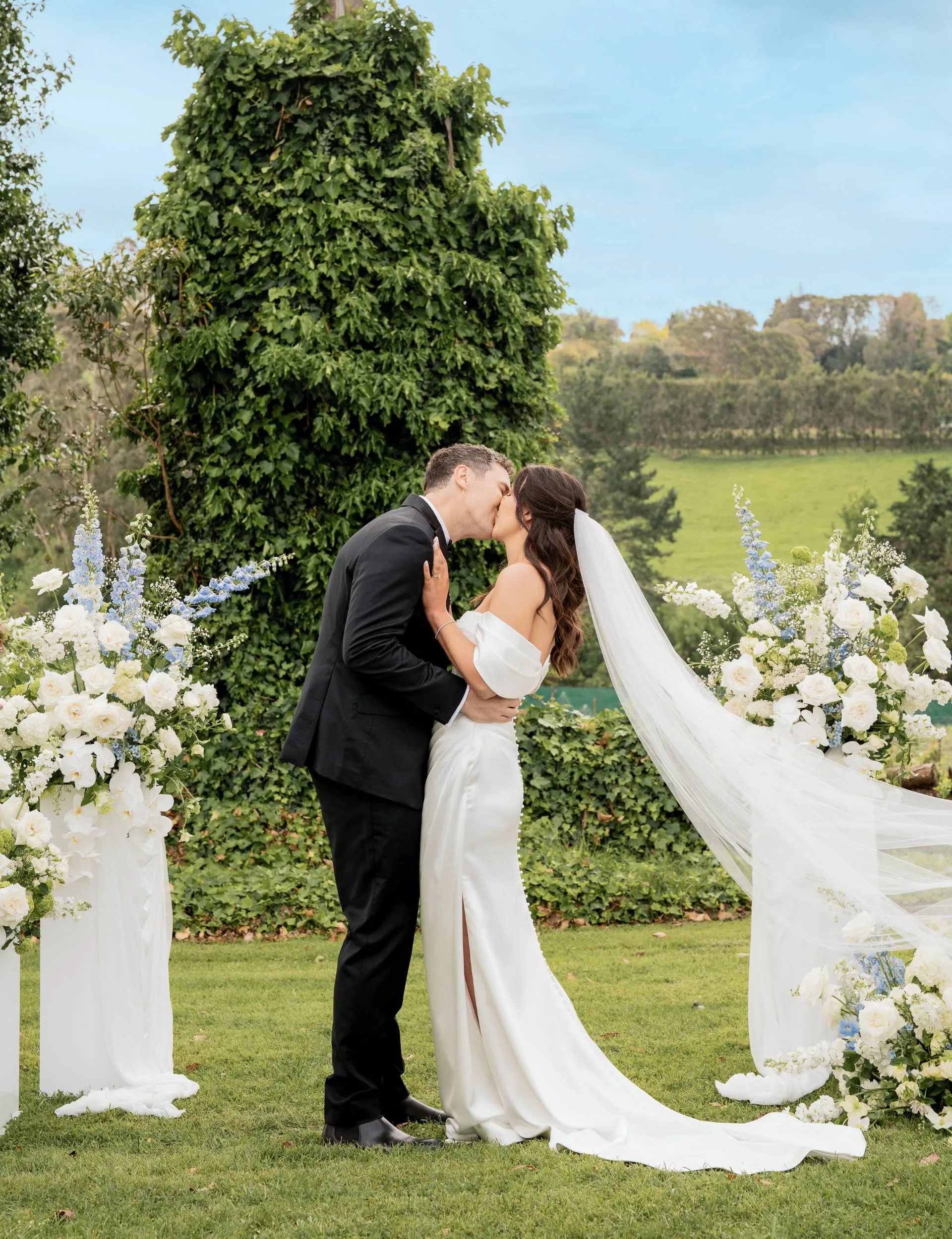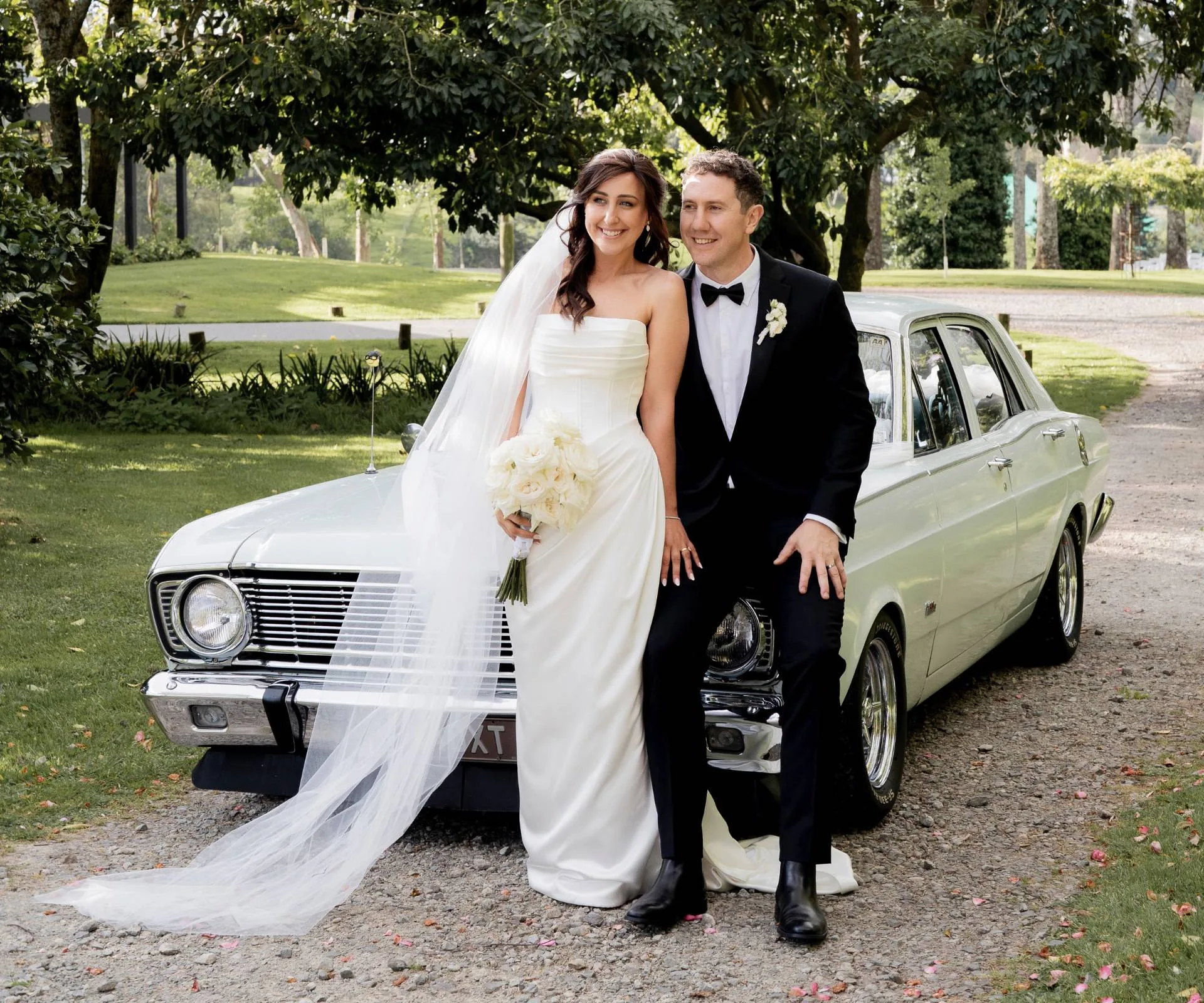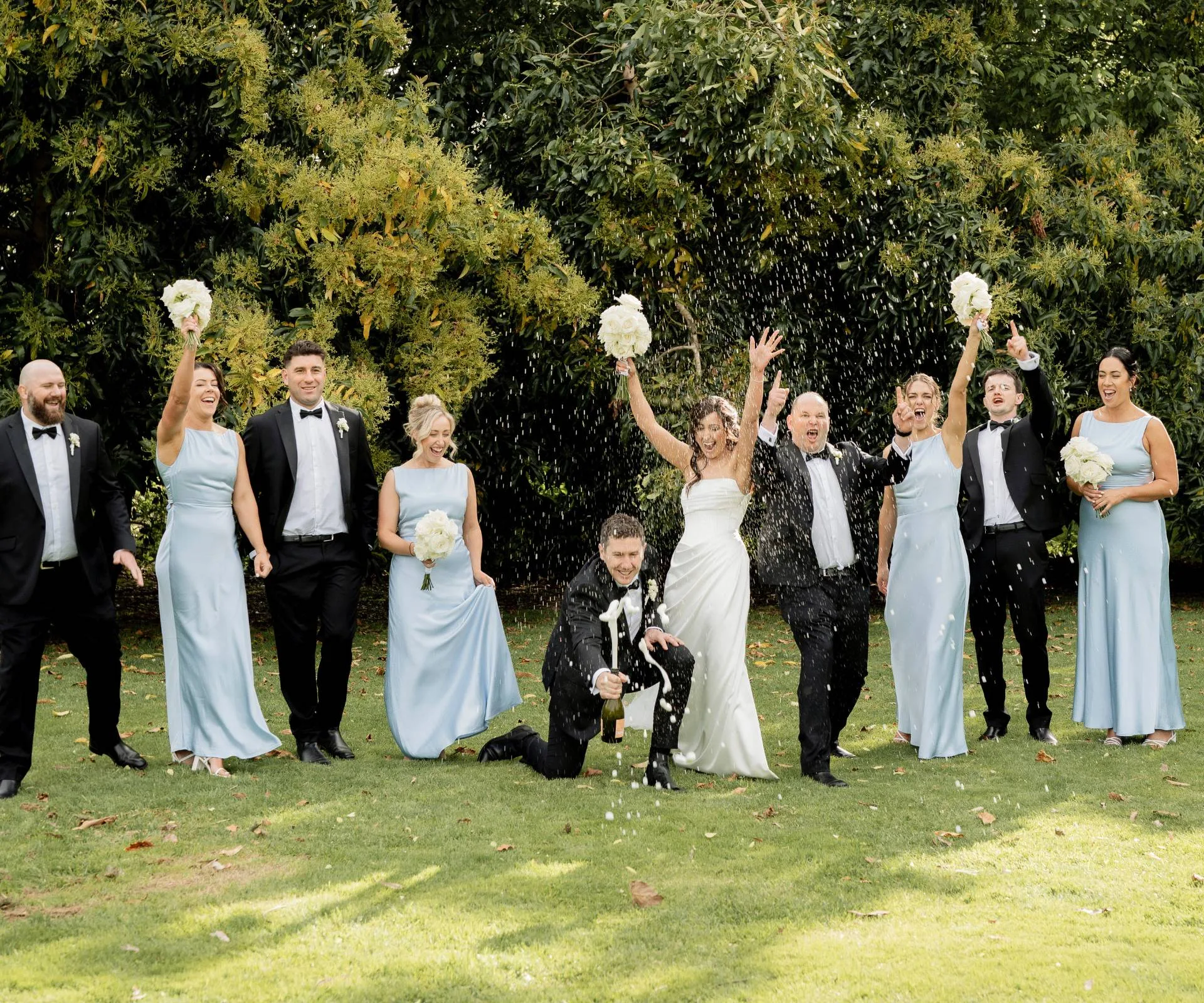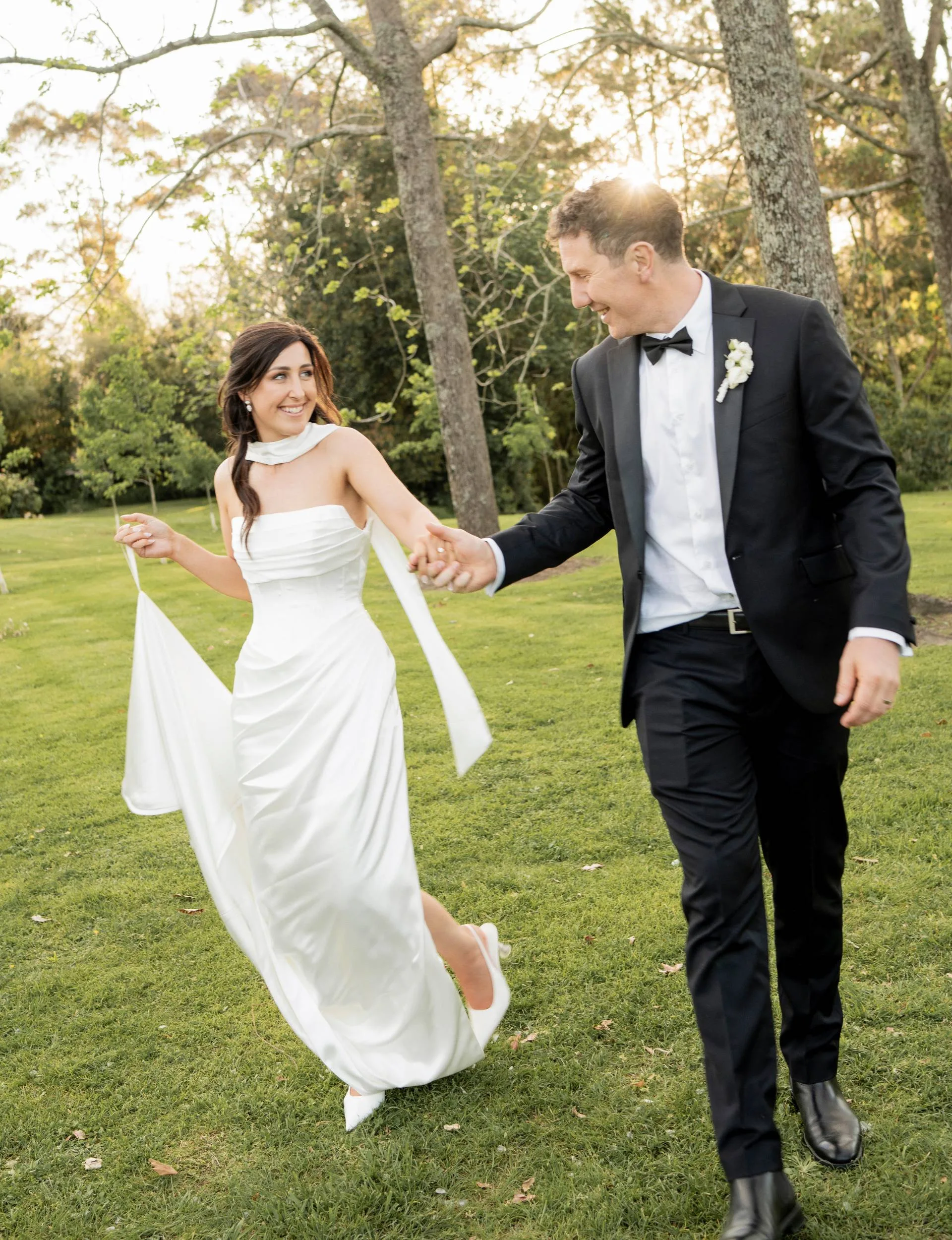 But sparks flew and after a few years navigating Marty’s international playing career, the pair settled in Dunedin, with Marty proposing last year. Fast-forward to their big day, despite the travel chaos and traffic mayhem, their 95 friends and family were gathered at Tauranga’s Black Walnut Venue to watch the couple exchange vows. Hilariously, as guests mingled, the father of the groom, Richard – who arrived just as Michelle’s wedding car pulled up to the stunning venue – was quickly changing into his suit in the bushes!