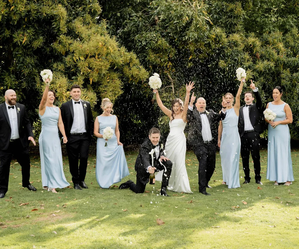 Marty delivered a humorous yet heartfelt speech, Michelle led guests in a spirited rendition of Hooked On A Feeling, and the groom’s rugby mates surprised the newlyweds with a haka.