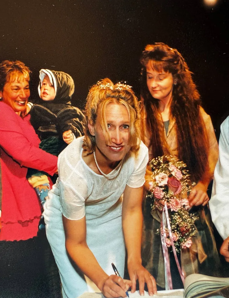 I told my boys’ dad and he said, ‘Bugger that, we should do it,’ so we were the first to be married. But the celebration site was really isolated and all these international film crews were coming, so we had to develop the track and set everything up. On the actual night, about 300 people sat on the hillside with candles and a brazier. There was kapa haka and waiata, and as soon as midnight hit, Reverend Riwai married us in an 80-second ceremony. Dad organised a carton of bubbles, but port was sent by mistake and everyone got quite merry.