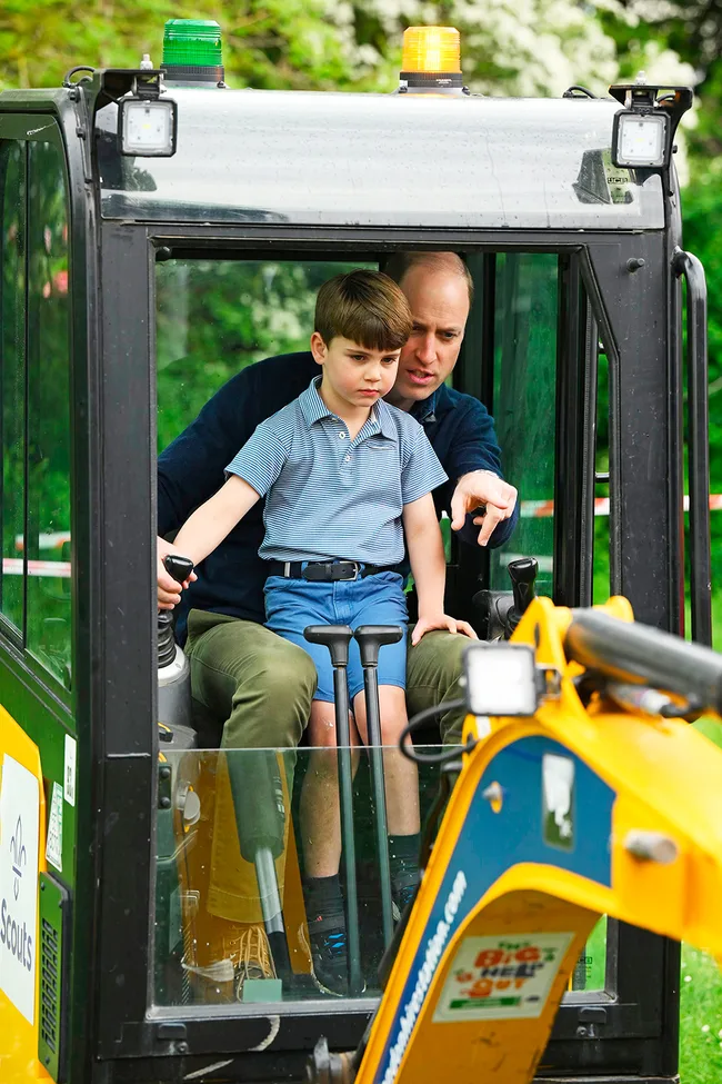 Power play! Louis joined his dad in the cab of the digger but revealed he plans to be a “fighter pilot” like his father and grandfather when he grows up.