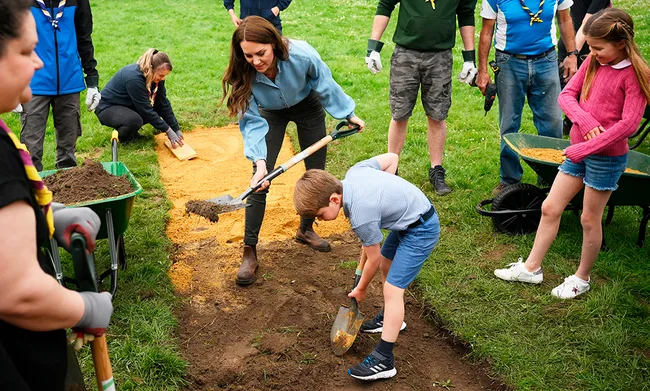 George the Builder! The tradie prince was on hand to help renovate a scout hut and make a wooden planter.