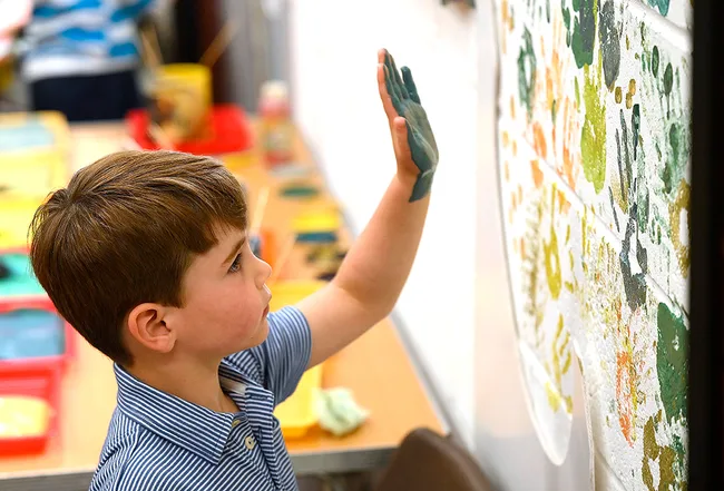 Louis helped out creating a mural and painting a planter – and got nice and messy in the process!