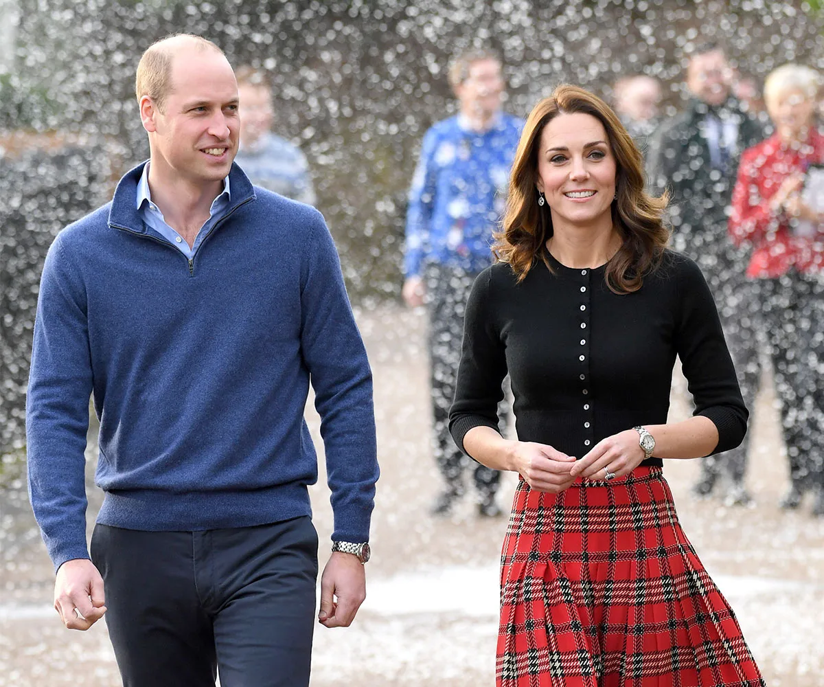 Kate looked stunning in a tartan skirt while Wills opted for a blue jumper and shirt. (Image: Getty)