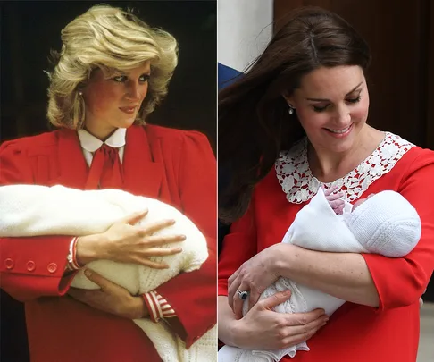 Despite having just given birth, Duchess Catherine looked flawless in a red Jenny Packham dress with a white collar, almost identical to the dress Princess Diana wore after giving birth to Prince Harry.