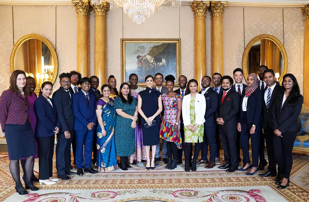 Duchess Meghan with young Association of Commonwealth Universities scholars on Monday. (Image: Chris Allerton/ Getty)
