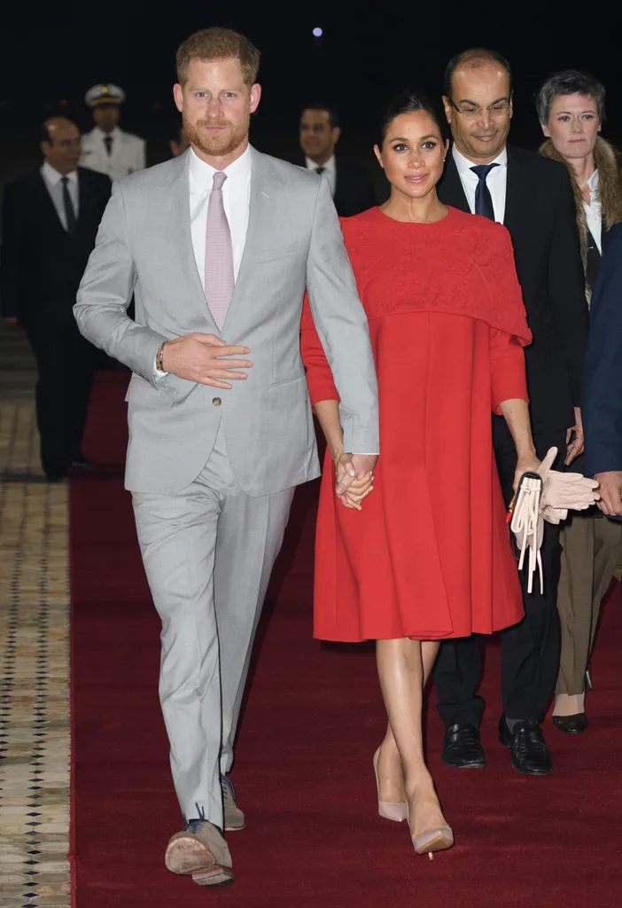The Duke and Duchess of Sussex made a stylish entrance at a reception hosted by the British Ambassador to Morocco. (Image: Getty)