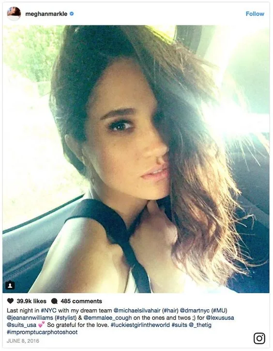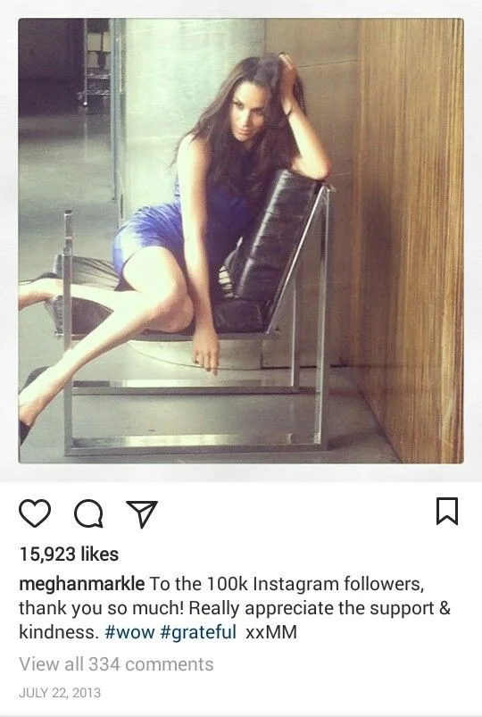 When Meghan reached 100,000 Instagram followers. We’re pretty sure that number would be a lot larger if her Instagram was active today…