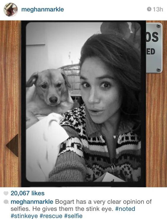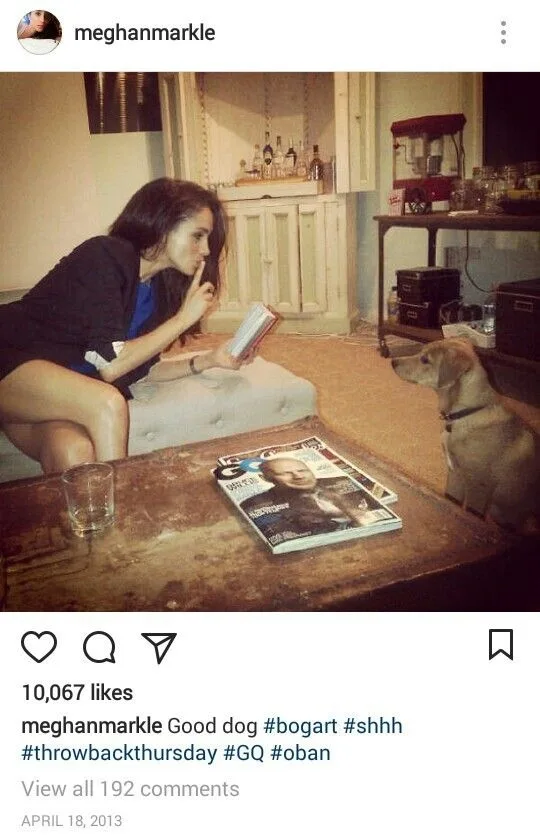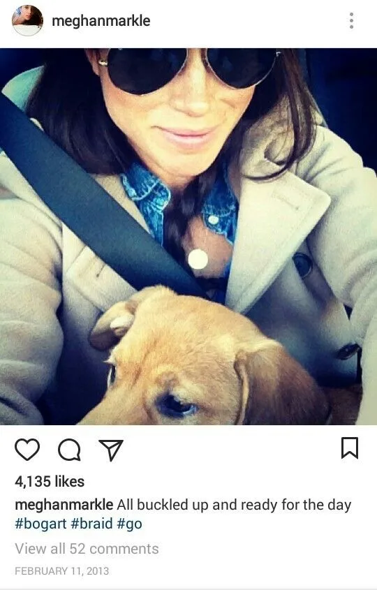 As we’ve previously reported, Meghan had to leave her dog Bogart back in Toronto. But she loved to play with him – he featured heavily on her Instagram.