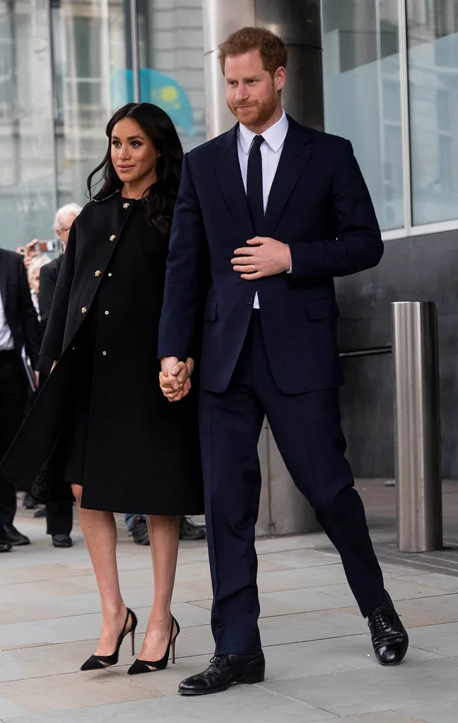 Heavily pregnant, Meghan wore an all-black ensemble and wore earrings previously gifted to her by New Zealand’s Prime Minister Jacinda Ardern.