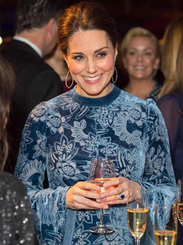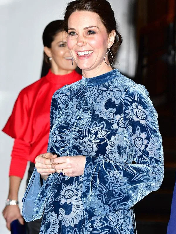 Duchess Kate stunned in a blue velvet dress for her final night in Sweden.
