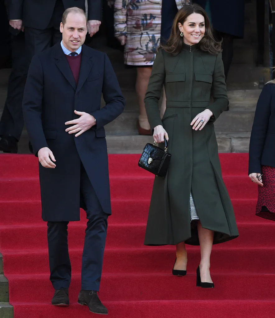 Duchess Catherine looked gorgeous in a white and black plaid dress from Zara and elegant green coat by Alexander McQueen while Prince William dressed in all blue, with a pop of colour from a maroon sweater.