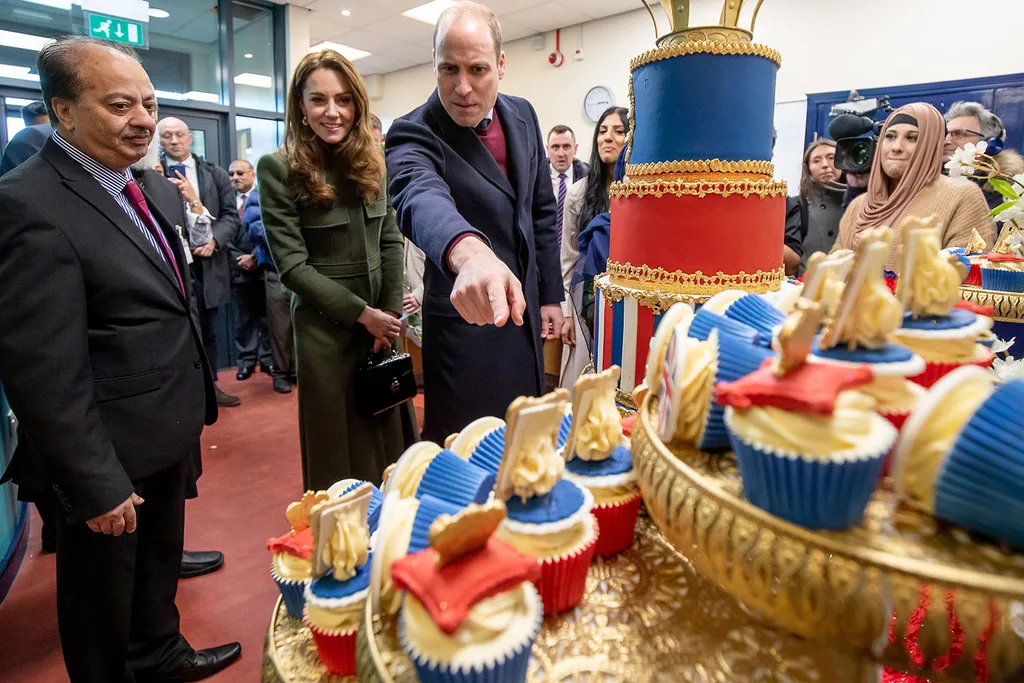 The couple visited the Khidmat Centres where they were shown an impressive cake and cupcakes which featured photographs of the royal couple – all edible – throughout important milestones in their lives including their engagement, wedding and the birth of their three children.