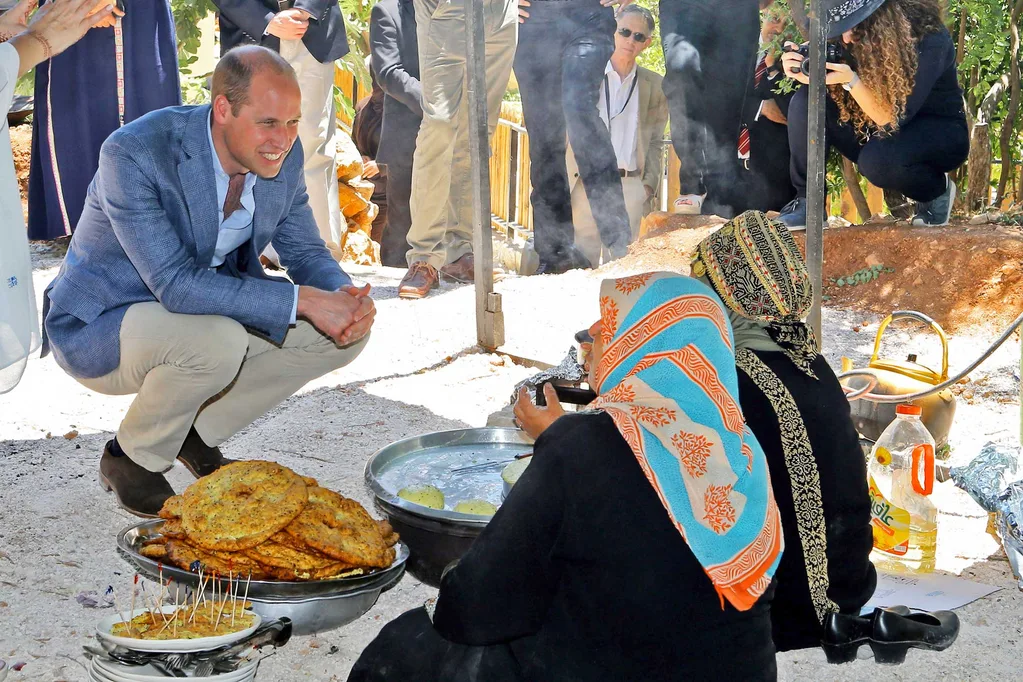 The duke got a lesson in frying bread, then found out more about the Dar Na’mah Centre, which supports orphaned women (right).