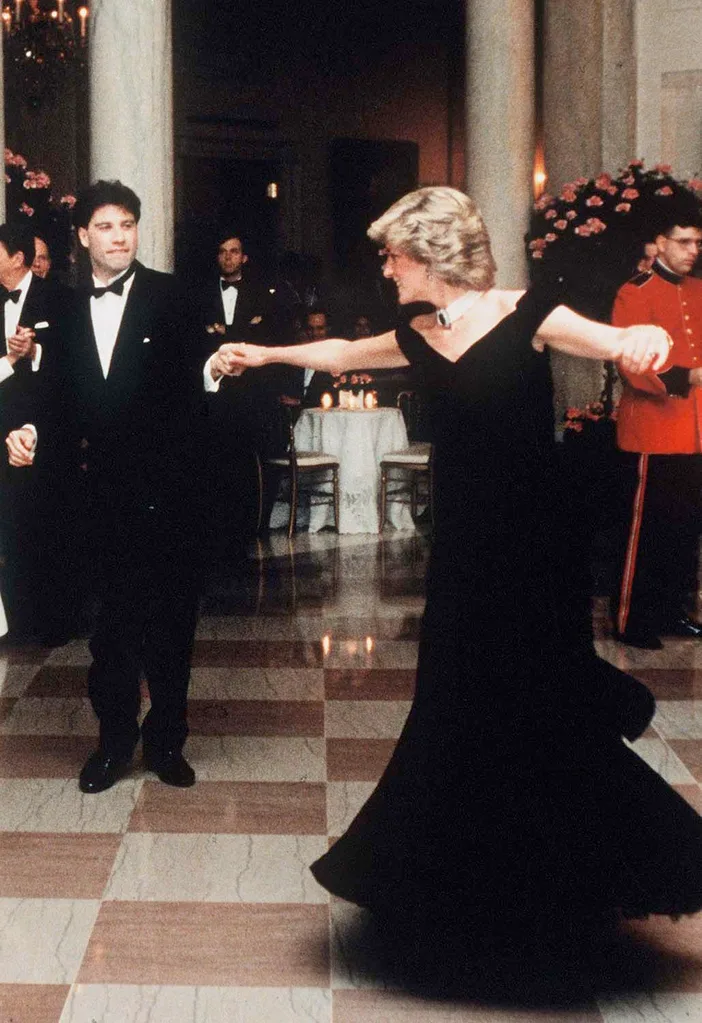 One of her most iconic dresses was the Victor Edelstein midnight blue velvet gown that she wore to a state dinner at the White House in 1985, where she famously danced with John Travolta.