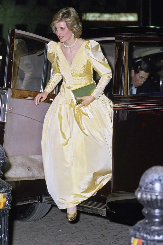 It was 1985 and here Princess Diana was arriving for the premiere of the film 2010 In London. She worea satin evening dress deisgned by Murray Arbeid.