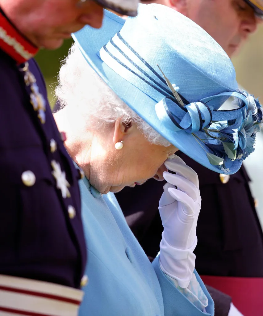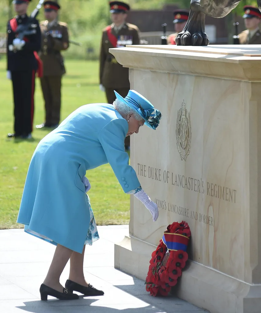 The 90-year-old had just returned to her seat after unveiling a bronze lion statue in memory of the 32 members of the regiment who have died since its formation in 2006.