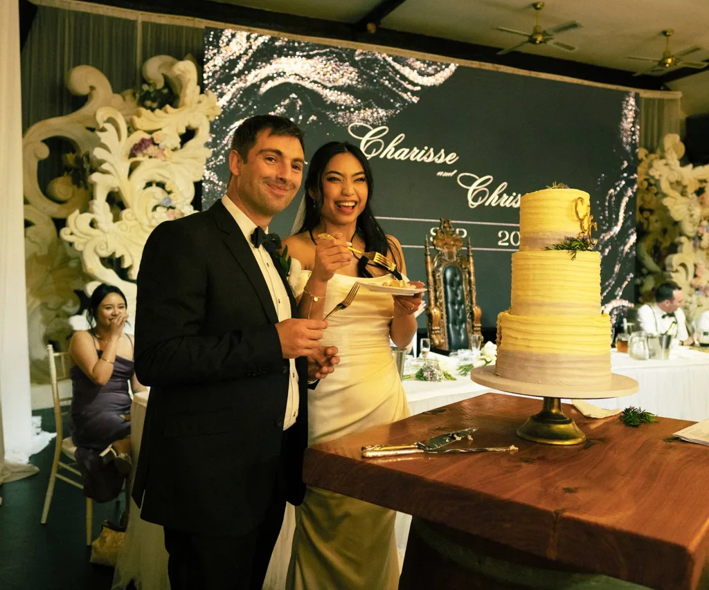 The gorgeous “royals” cut an Earl Grey tea and lavender-flavoured cake made by Filipina baker Ella Concepcion. But it was another dish that stole the show, with Charisse’s family organising a celebratory Filipino lechon, a whole roasted pig.