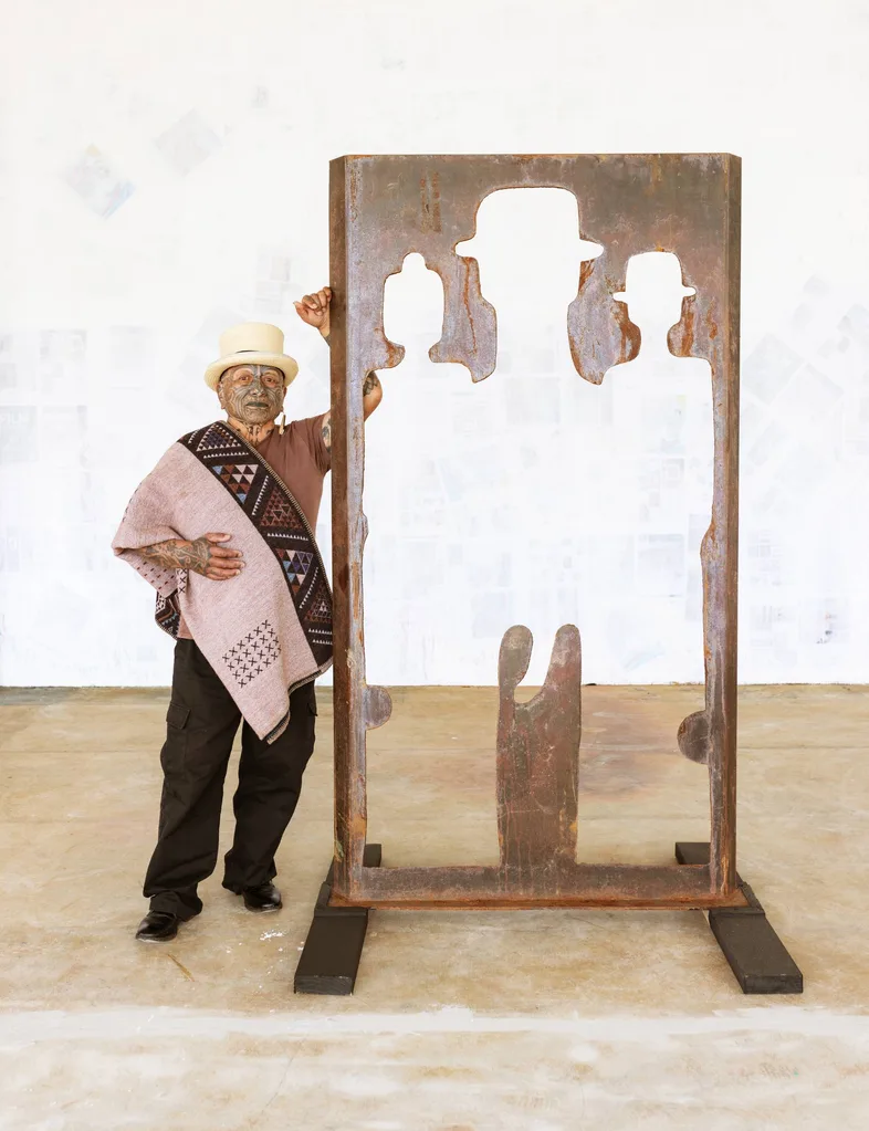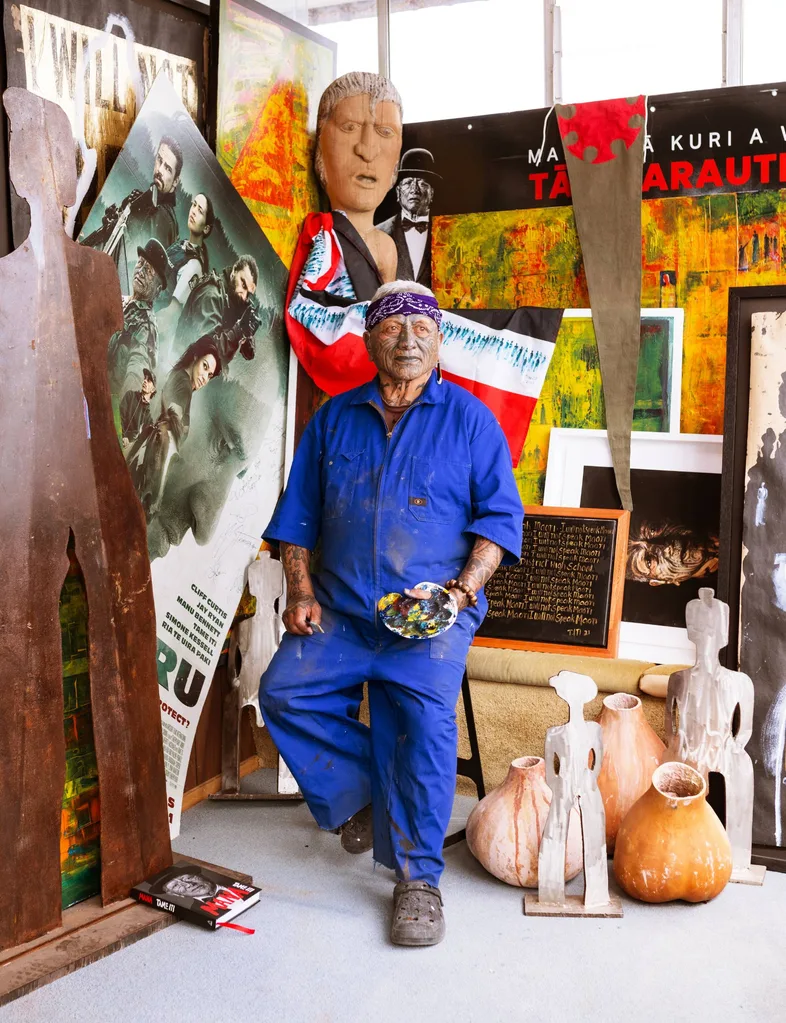 Every day they touch you. They feel you. They take off your pants to see if you’ve got anything hidden. It’s pretty out of it. It took me a while to breathe in and breathe out, and to go through that process. But it was an interesting period where I learned to navigate their system. To work for them, for it to work for me. So when the screws asked, ‘Can you do this or do that?’ I’d say, ‘Yes, I will go talk to those fellas if I can have some canvas and paint,’ because I wanted to paint at night. Painting was my escape and with each stroke of the brush, I could breathe a little better. I was given two and a half years for the Tūhoe raids, but in the end, I only did nine months. Some of those guys I was in with in 2012, they’re still inside today.