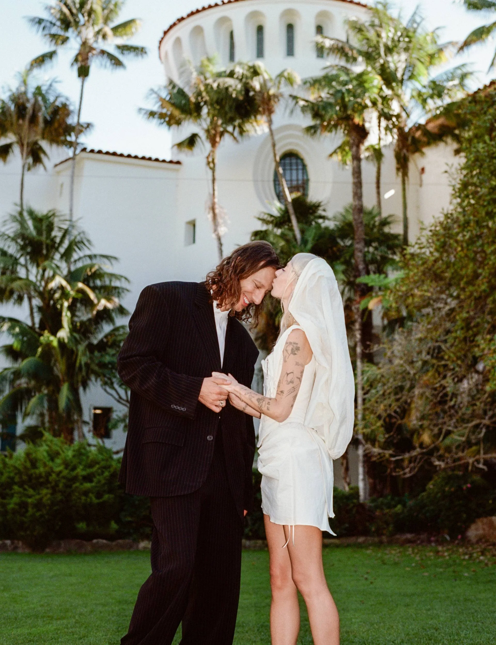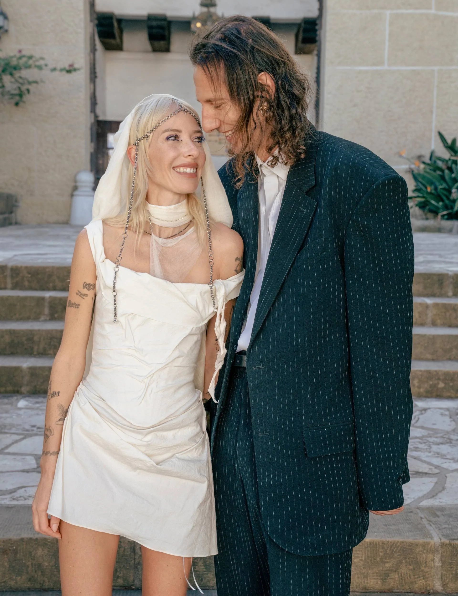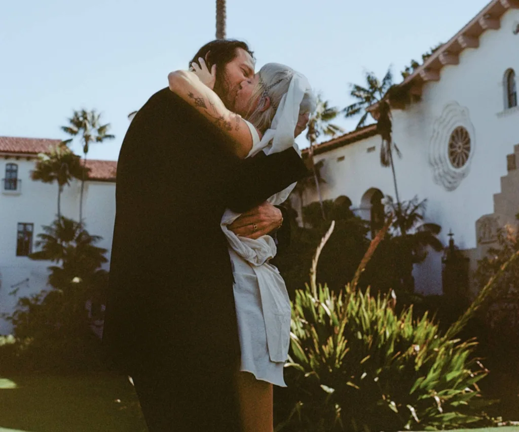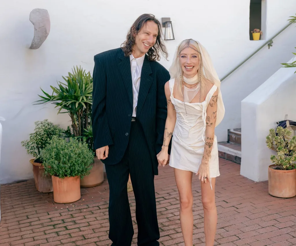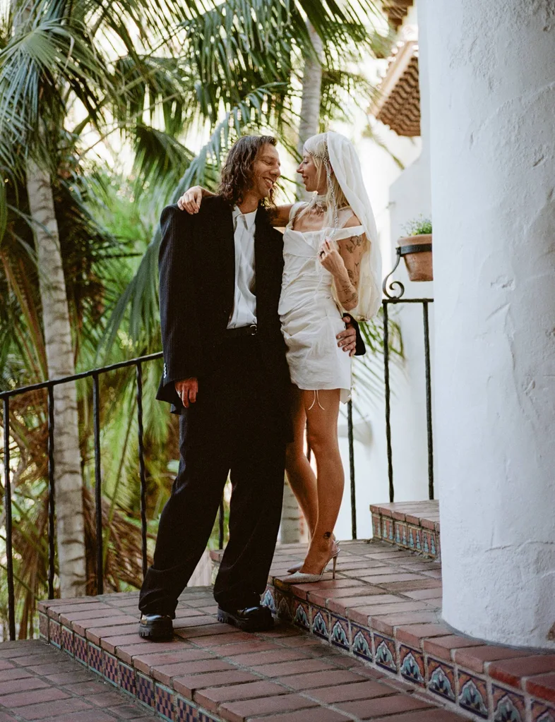 Excited to get married and keen to avoid the stress of planning a big event, they decided to have a “micro- wedding”, with just eight guests at a beautiful hotel located 90 minutes north of LA. Anouk and their mum Dee were by Jordan’s side as she slipped into a “dream dress” by Italian designer Marina Eerrie and a chain headpiece made by a friend.