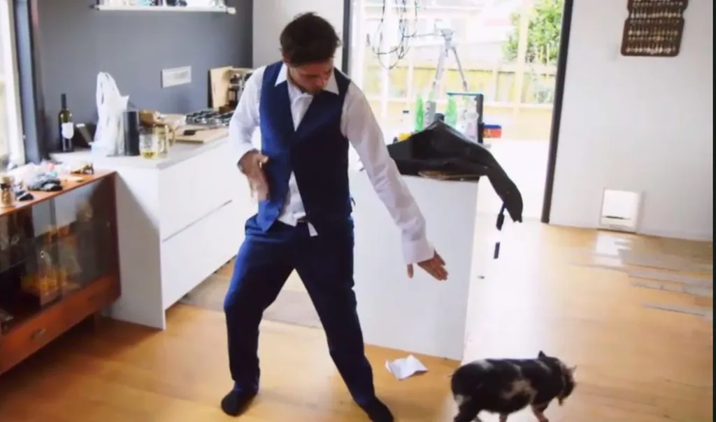 Ahead of their wedding, Andrew was filmed at home with his groomsmen and Mr Pigglesworth… And we couldn’t help noticing that the flat is need of some TLC.