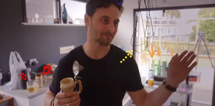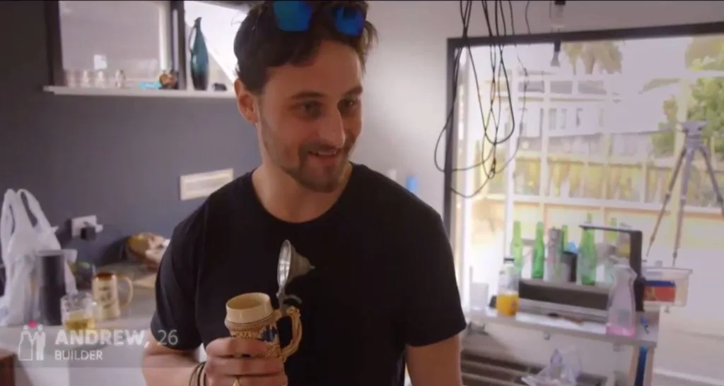 Maybe they are doing some renos on the house – Andrew is after all a builder – but what about the bottles everywhere? From the lounge and kitchen to the bathroom, there are beer bottles on almost every surface.