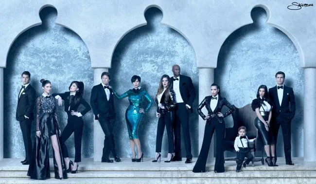 Happy Holidays from the Kardashians in 2012! From left: Kylie, Kim, Rob, then Bruce, now Caitlin, Mason, Scott, Lamar, Khloe, Penelope, Kourtney, Kris and legs eleven Kendall.