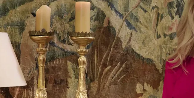 After considering a Louis Vuitton hat box for a mere $28,000, the ladies opt for two giant gold candlesticks instead.