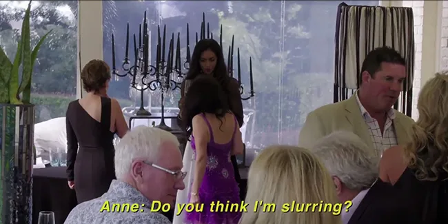 Anne chugs her umpteenth glass of champs.