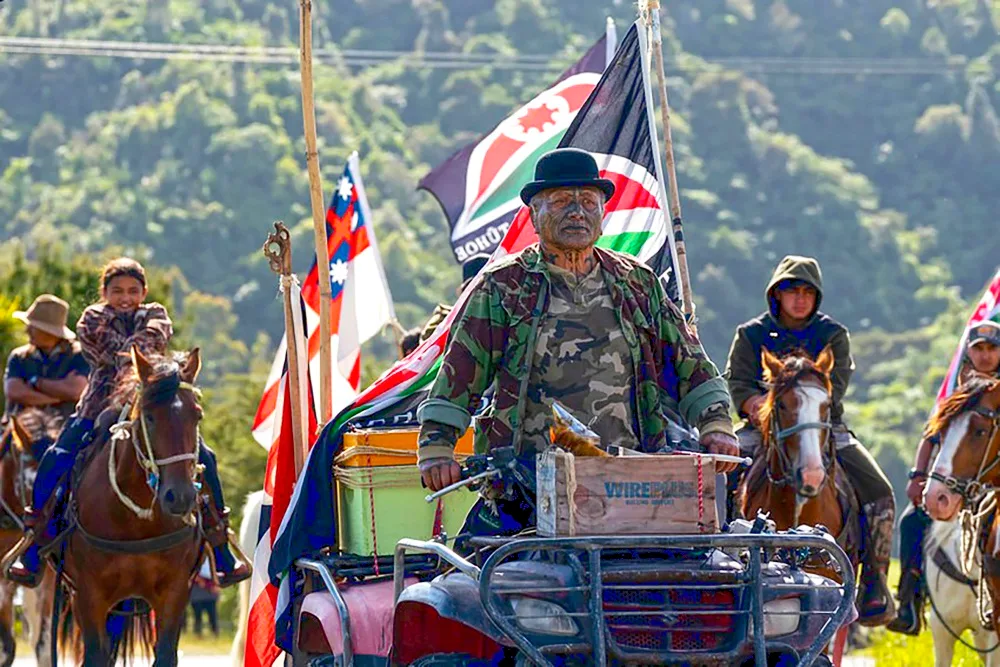 Although he’s best known as an activist and artist, over the years Tāme has also been a radio DJ, a social worker helping people with addictions, and co-producer of the 2022 film Muru, based on the 2007 police raids in Ruatoki. Tāme starred as himself in the movie, which he wasn’t sure about at first.