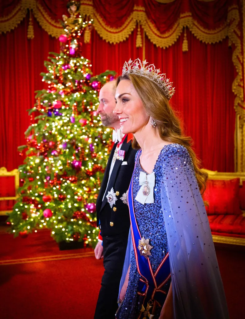 Wearing the rarely seen Oriental Circlet Tiara, originally set with 2,600 diamonds for Queen Victoria, Kate sparkled in a sequined Jenny Packham gown at the dinner. The event was also attended by supermodel Claudia Schiffer and film composer Hans Zimmer.