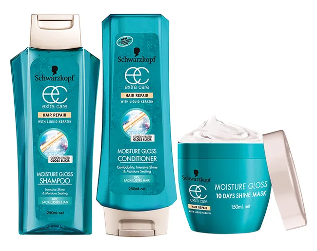 Schwarzkopf Extra Care Moisture Gloss – a three-step system designed to add shine to lacklustre hair. It contains liquid hair repair to fill gaps in the cuticles. There’s a shampoo and conditioner $6.39 each and a 10 days shine mask $9.99.