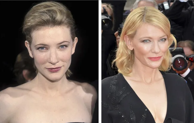 Cate Blanchett, 46, is coveted for her flawless skin. Here the Oscar-winner is in 1998 and again in 2015.