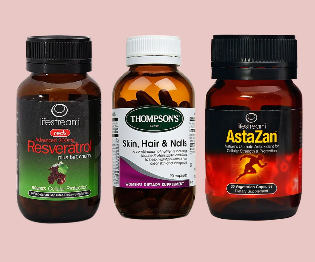 From left to right: Lifestream Advanced Resveratrol, 60 capsules, $44.50. Thompson’s Skin Hair & Nails, 45 capsules, $29.70. Lifestream AstaZan, 30 capsules, $36.90.