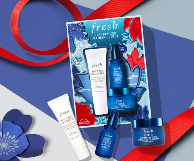 This holiday gift set offers a full evening skincare ritual in one handy pack, to help you wake up with that fresh-faced glow. Start with Soy Face Wash to deeply cleanse and calm visible redness. Follow with Lotus Serum to gently resurface and smooth skin. Finish with the overnight recovery Lotus Face Cream to improve radiance by morning.
