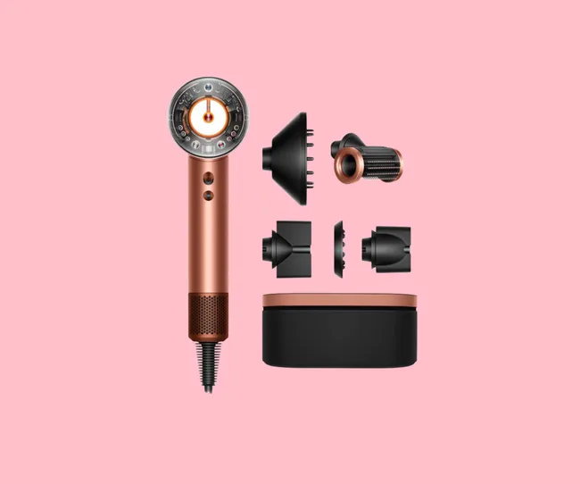 What’s inside: Dyson Supersonic Nural Hair Dryer in amber silk, 5 attachments, Chitosan Pre-style cream, and a travel case with complimentary personalisation