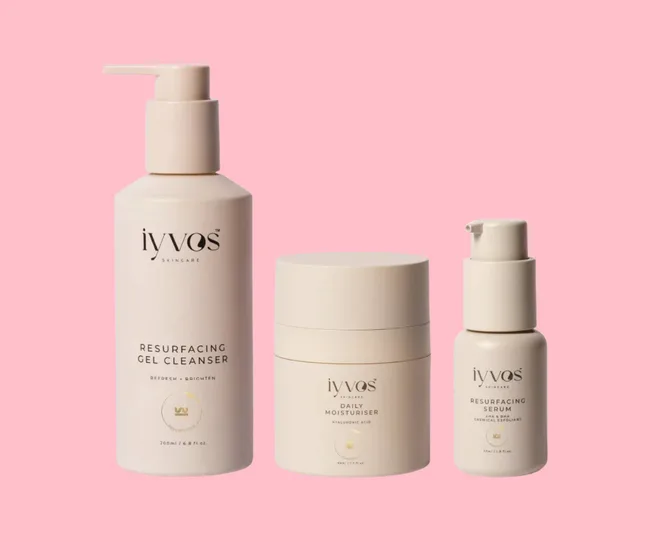 What’s inside: Gel cleanser, resurfacing serum, moisturiser