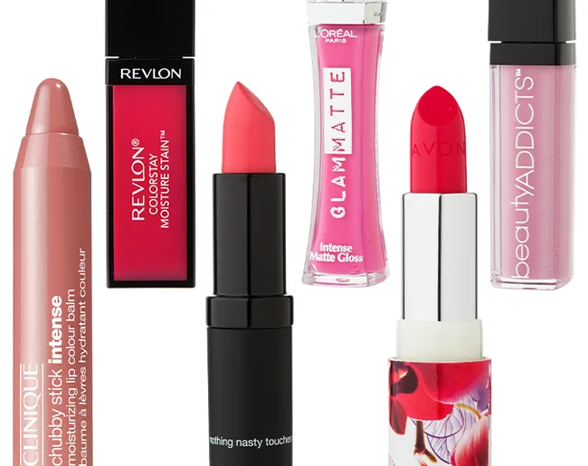 Get the look: Clinique natural lip colour, $40. Revlon ColorStay Moisture Stain, $30.50. Karen Murrell Lipstick in Poppy Passion, $29.95. L’Oréal Paris Glam Matte in Future Flare, $23.99. Avon Ultra Color Rich Lipstick in Bright Bellis, $22.99. Beauty Addicts Lip Addiction Gloss in Tease, $24.