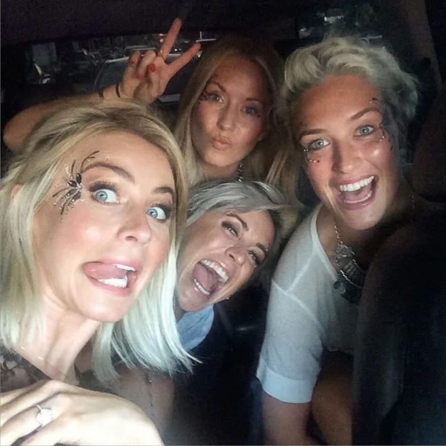 Dancer/actress Julianne Hough’s 5-carat-plus engagement ring from Lorraine Schwartz can’t help but catch the light in this Instagram shot! The Dancing With The Stars judge is engaged to hockey player Brooks Laich.