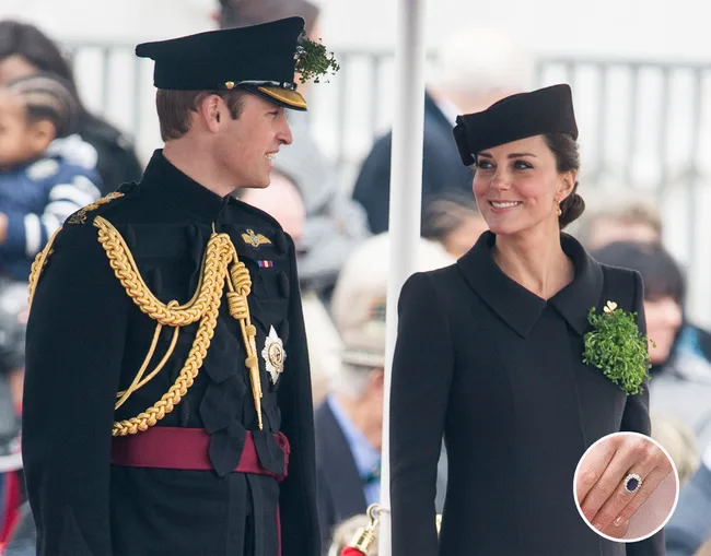 The Duchess of Cambridge’s stunning £1 million sapphire and diamond engagement ring previously belonged to the late Princess Diana. Photo: Getty