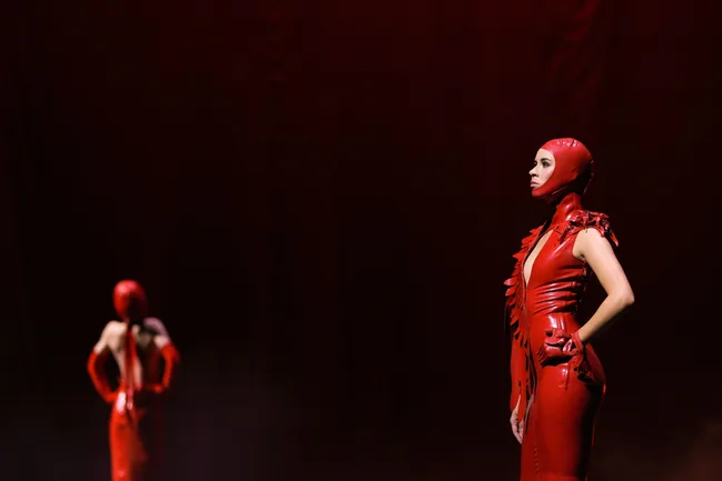 ‘Vicarious’ by Etainia Dagda of New Zealand is modelled in the Red Section