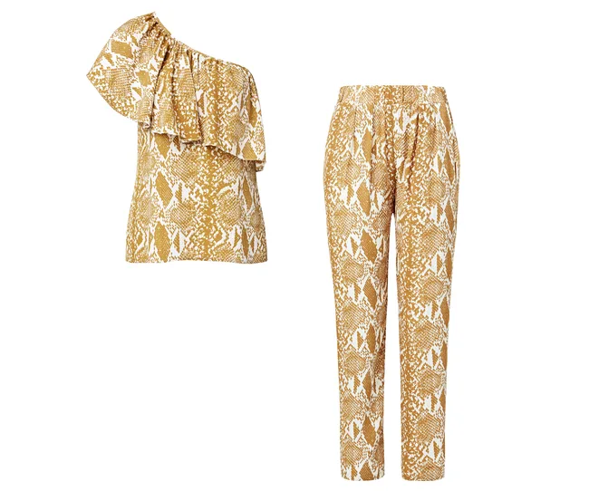 Top, $175, and pants, $140, both from Topshop