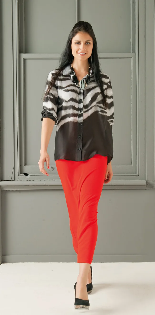 It’s a jungle out there! Tackle the streets and the workplace in this season’s safari-inspired prints and colours. It’s all about mixing your prints with bold block colours, such as red and tangerine, with natural earth tones such as camel and khaki. When you’re working with bold prints, keep your silhouettes simple. Create long lines with maxiskirts and minimise overpowering prints with unstructured blazers in block colours. Relaxed tailoring is the foundation of this look and it’s super-easy to layer, making it the perfect style as the seasons change. Sharpening up this relaxed look for work is easy, with the use of a waisted belt to pull in soft layers. Swap chunky ankle boots for elegant heels and your look will transform from hill climbing to corporate ladder climbing.