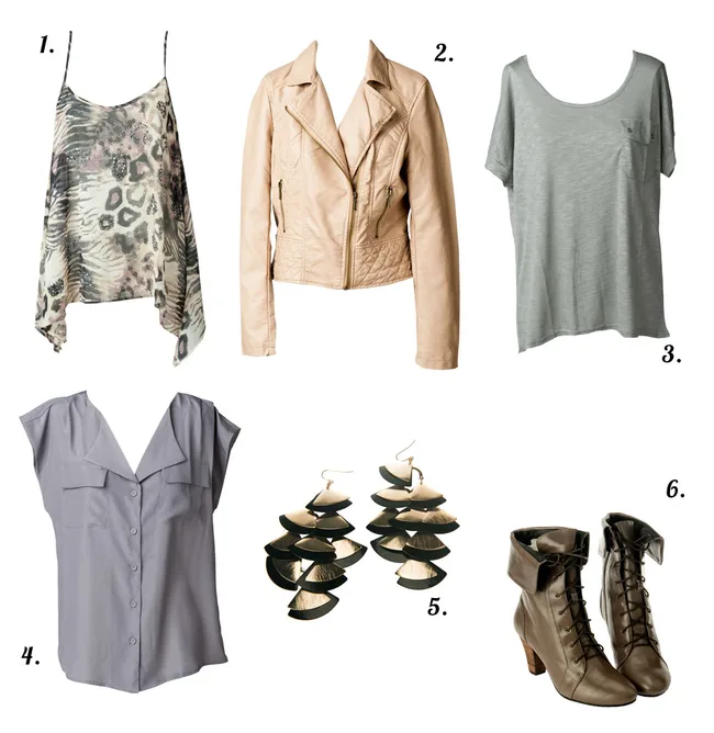 If you want a classic urban-jungle look, try a safari dress like this – it’s perfect for petite figures. Essentials merino jumper $29 (8-22) from EziBuy. Print top $49.99 (8-16) from Just Jeans. Skirt $99.99 (8-16) from Jacqui-E. Wooden bangle $29.95 and clutch $69.95, both from Sussan. Dawn ankle boots $219.90 from Overland