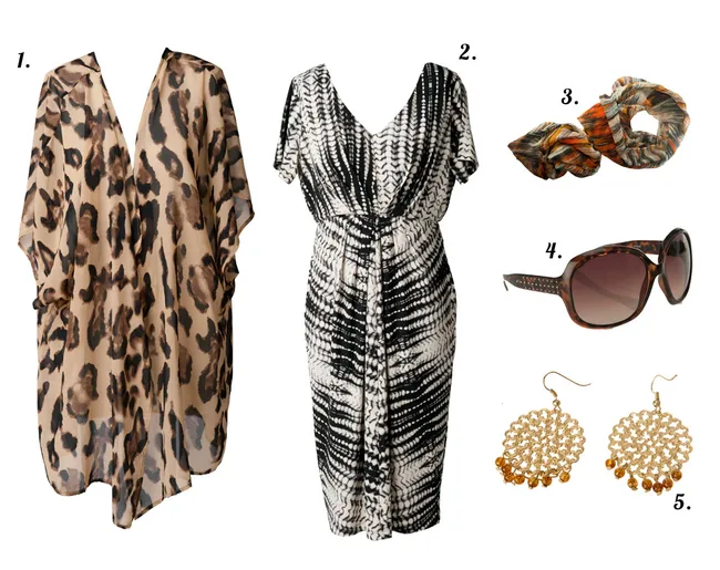 If you don’t like wearing animal prints, opt for tops and dresses in graphic prints instead. Dress $129.95 (8-16) from Sussan. Animal print jumper $79.95 (XS-XL) from Sussan. Wooden beaded necklace $16.99, bangles $19.99 (set of 5) and cuff $16.99 from Equip. Everest ankle boots $229.90 from Overland