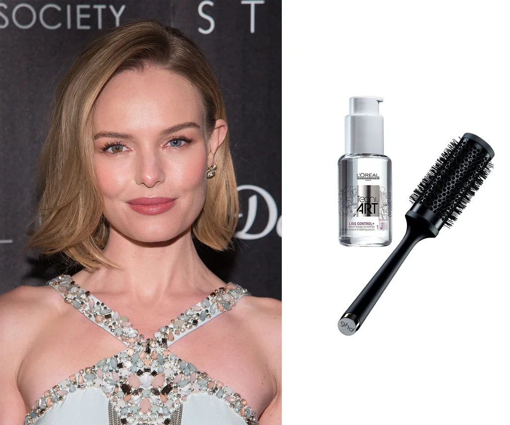 Tool: “A good ceramic round brush is essential for this type of style to help tuck the ends under and give the look a smooth finish. When blow-drying, work section by section, clipping up certain segments. Dry with the air directed down the hair shaft and use the brush by tucking the ends under to give a classic finish.”