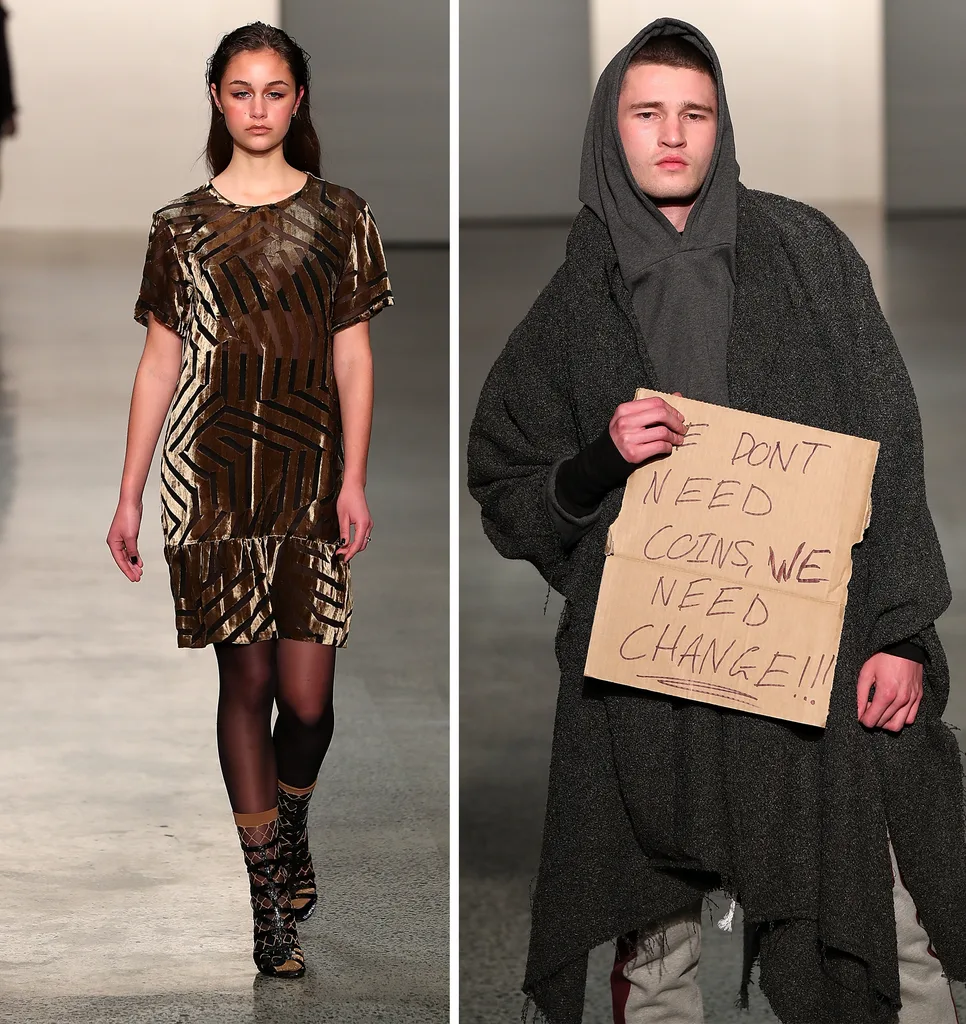 Pania Greenaway’s collection was dominated by jewel tone velvets, metallic lurex and paperbag waists. The highlight for me was from Wellington based menswear label, Not For You which was presented to a killer hip hop soundtrack featuring streetwear that wouldn’t look amiss on Kanye West while making a bold ethical statement about homelessness in our country.